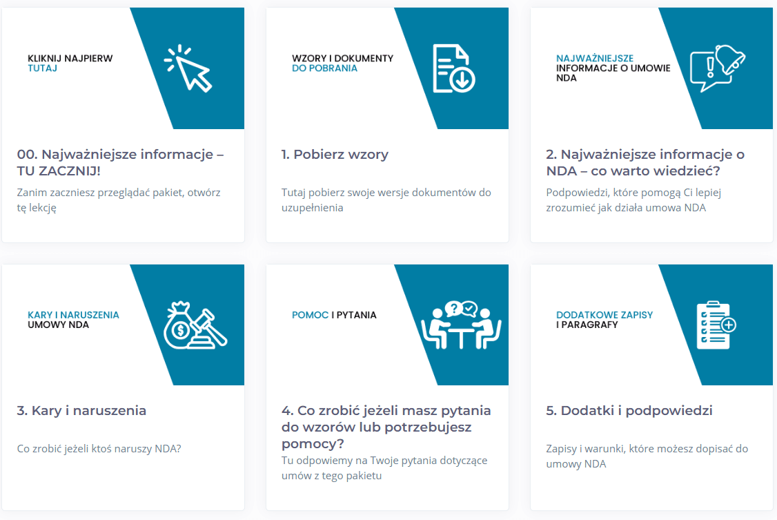 Dzięki lekcjom z panelu dowiesz się jak fachowo i sprawnie uzupełnić i zabezpieczyć swoją umowę NDA.